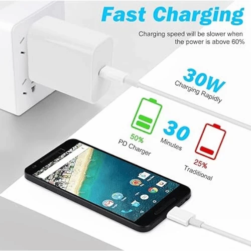 Charge in a flash with the Google 30W USB-C Power Charger, designed to deliver up to 66% more power to USB-C devices compared to the previous-generation 18W USB‑C charger. Whether you're at home, in the office, or on the go, this compact and efficient charger ensures your Google devices and any third-party USB‑C device are powered up and ready to go.
